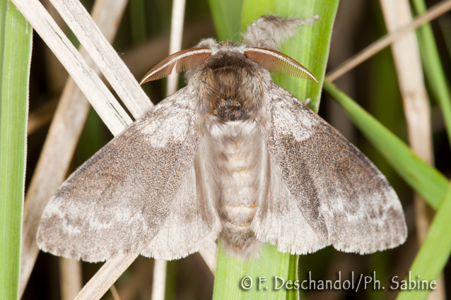 : Orgyie pudibonde (Elkneria pudibunda), mâle, forme sombre, Baie de Seine (76), France.