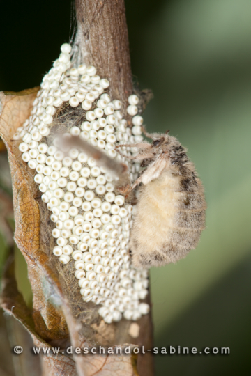 : Etoilée (Orgyia antiqua), femelle et ses oeufs, Nantes (44), France.