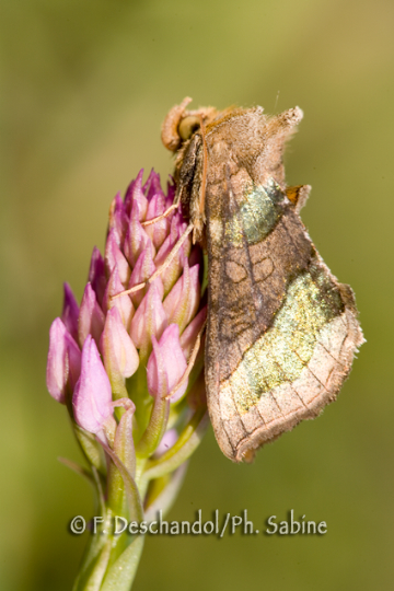 : Plusie vert-doré (Diachrysia chrysitis), Sandouville (76), France.