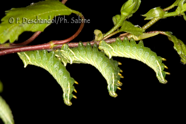 : Bombyx versicolore (Endromis versicolora), chenilles 3ème stade, Bitovany, République Tchèque.