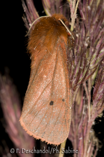 : Ecaille cramoisie (Phragmatobia fuliginosa), mâle, Baie de Seine (76), France.