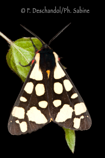 : Ecaille villageoise (Epicallia villica), mâle, Sandouville (76), France.