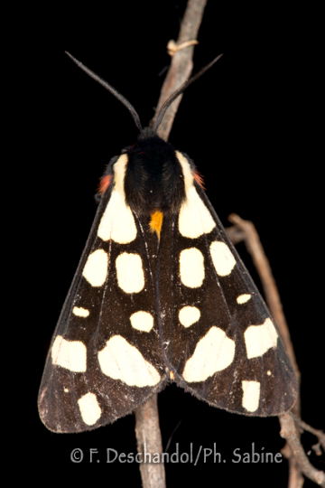 : Ecaille villageoise (Epicallia villica), mâle, Sandouville (76), France.