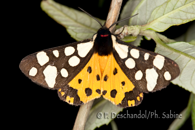 : Ecaille villageoise (Epicallia villica), mâle, Sandouville (76), France.