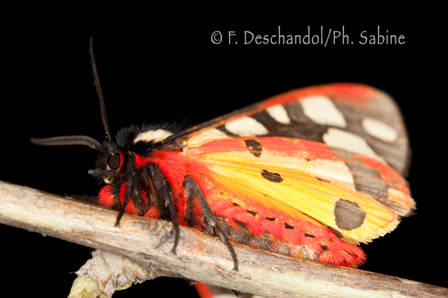 : Ecaille villageoise (Epicallia villica), mâle, Sandouville (76), France.