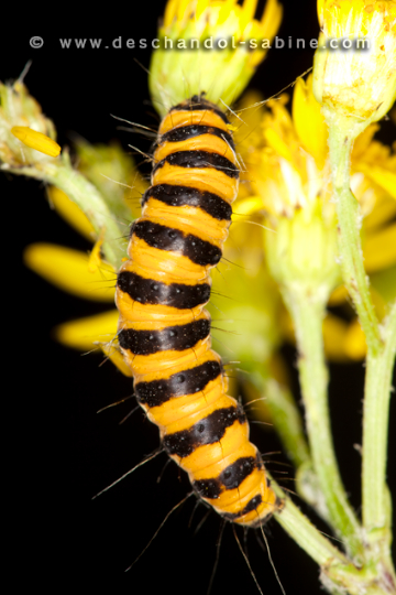 : Ecaille du Séneçon (Tyria jacobaeae), chenille 5ème stade, Baie de Seine (76), France.