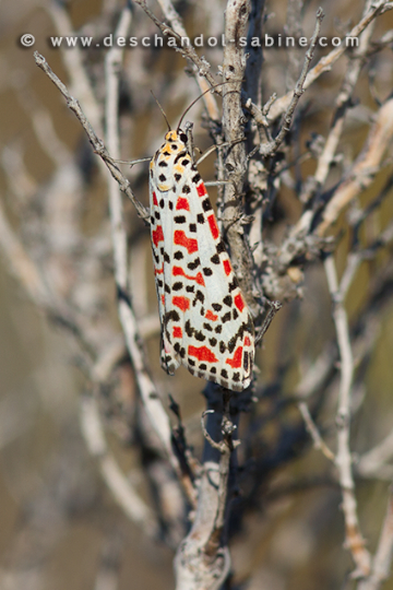 : Ecaille du Myosotis (Utetheisa pulchella), Illa Del Toro, Mallorque, Baléares, Espagne.