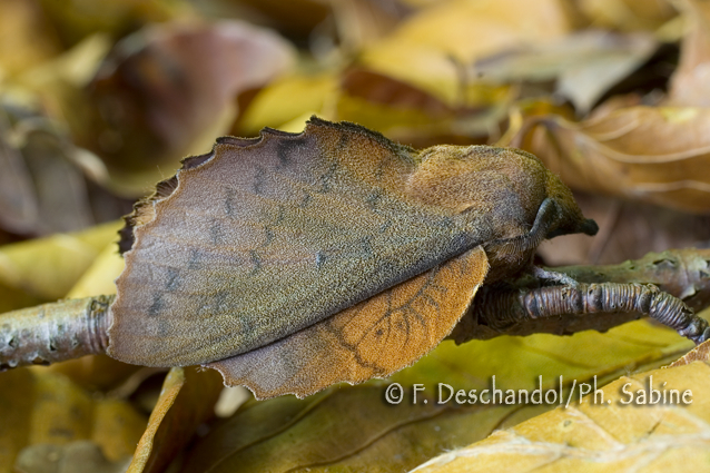 : Feuille morte du Chêne (Gastropacha quercifolia), mâle, Slovaquie.