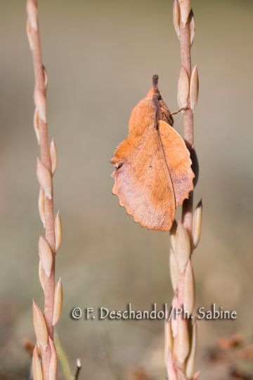 : Feuille morte du Chêne (Gastropacha quercifolia), mâle, forme méridionale, Carcassonne (11), France.