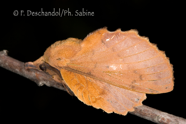 : Feuille morte du Chêne (Gastropacha quercifolia), mâle, forme méridionale, Carcassonne (11), France.