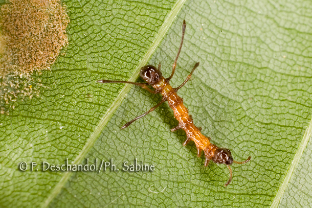 : Staurope du Hêtre (Stauropus fagi), chenille 1er stade, Treillières (44), France.