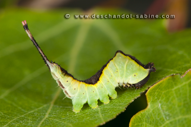 : Grande queue fourchue (Cerura vinula), chenille 3ème stade, Baie de Seine (76), France.