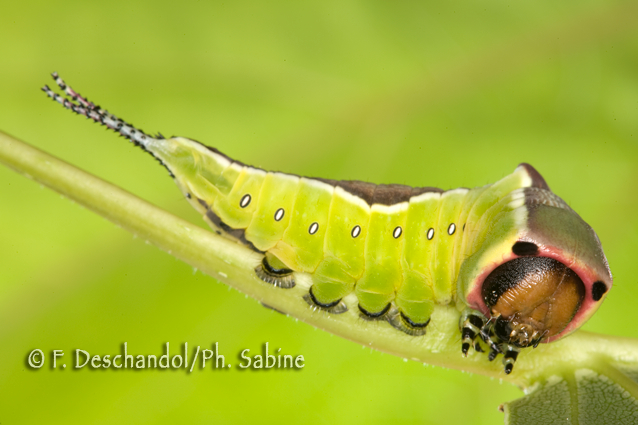 : Grande queue fourchue (Cerura vinula), chenille 5ème stade, Baie de Seine (76), France.