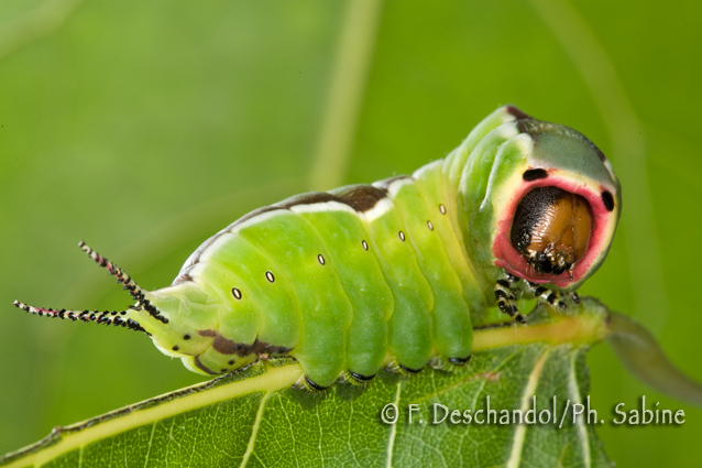 : Grande queue fourchue (Cerura vinula), chenille 5ème stade, Baie de Seine (76), France.