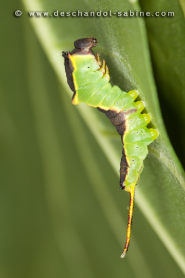 : Hermine (Cerura erminea), chenille 3ème stade, mue proche, Saverne (67) France.