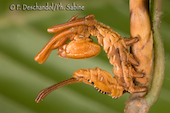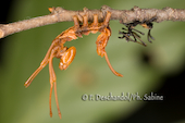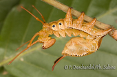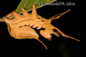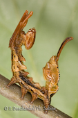 Staurope du Hêtre (Stauropus fagi), chenille 5ème stade, attitude de menace, Treillières (44), France.