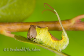 Grande queue fourchue (Cerura vinula), chenille 2ème stade après la mue, Baie de Seine (76), France.