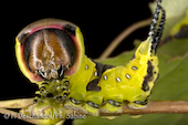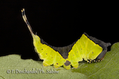 Grande queue fourchue (Cerura vinula), chenille 5ème stade, attitude d'intimidation, Baie de Seine (76), France.