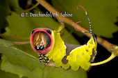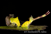 Grande queue fourchue (Cerura vinula), chenille 4ème stade après la mue, attitude d'intimidation, Baie de Seine (76), France.