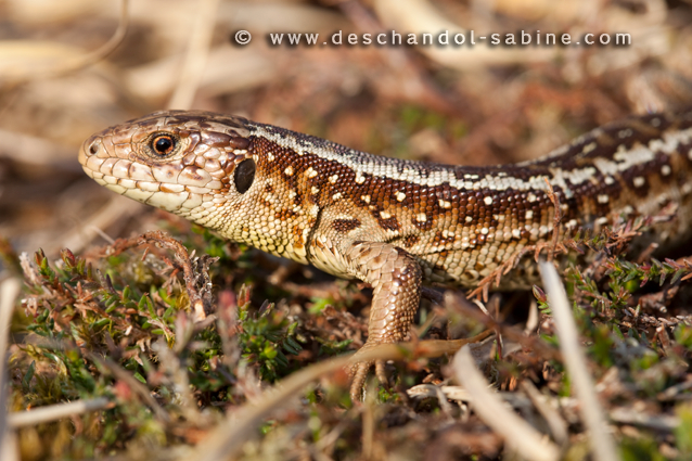 : Lézard des souches (Lacerta agilis agilis), femelle, Rouen (76), France.