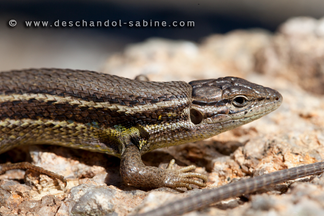 : Psammodrome algire (Psammodromus algirus), Entrimo, Espagne.
