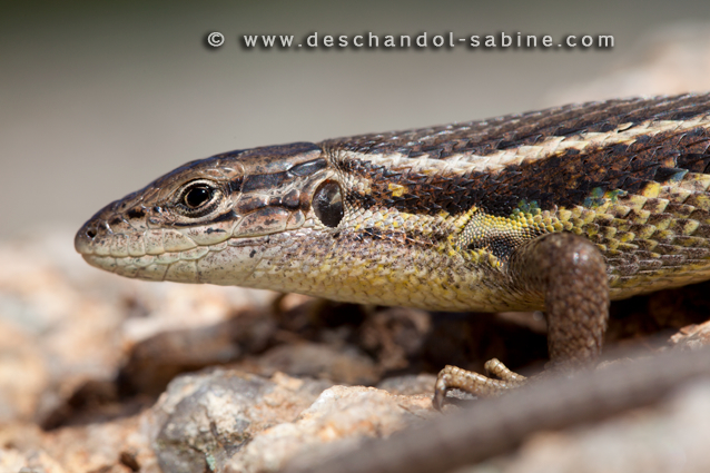 : Psammodrome algire (Psammodromus algirus), Entrimo, Espagne.
