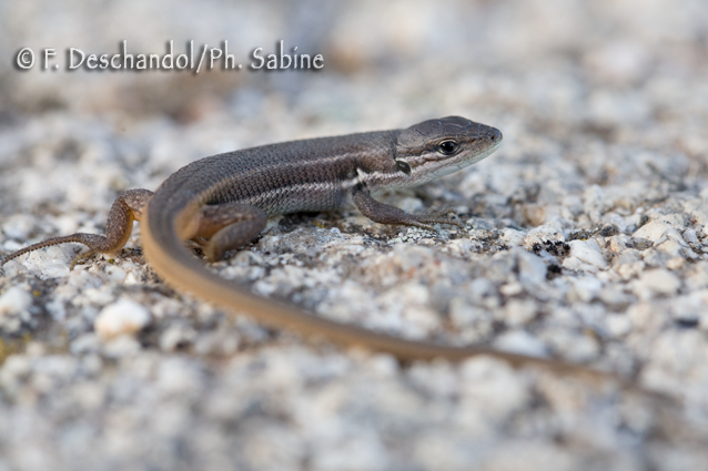 : Psammodrome algire (Psammodromus algirus), jeune, San Martin de Valdeiglesias, Espagne.