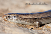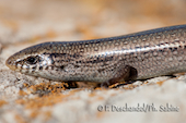 Seps de Bedriaga (Chalcides bedriagae bedriagae), jeune, Lagune de Zaida, Espagne.