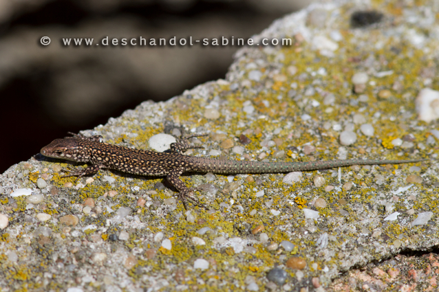 : (Podarcis carbonelli berlengensis), jeune, Iles Berlengas, Portugal.