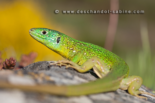 : Lézard vert occidental (Lacerta bilineata), Picos de Europa, Espagne.