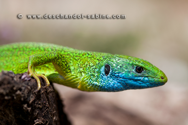 : Lézard vert occidental (Lacerta bilineata), mâle, Vižinada, Croatie.