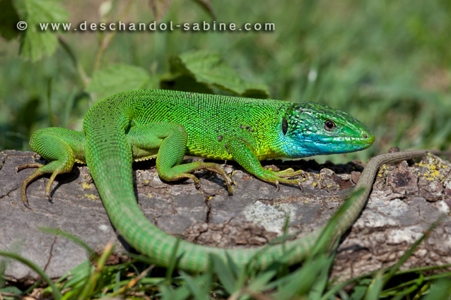 : Lézard vert occidental (Lacerta bilineata), mâle, Muzzana del Turgnano, Italie.