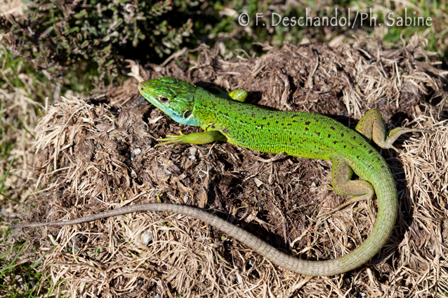 : Lézard vert occidental (Lacerta bilineata), subadulte, Larrau (64), France.