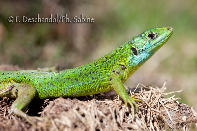 : Lézard vert occidental (Lacerta bilineata), subadulte, Larrau (64), France.