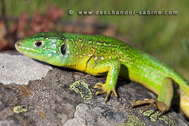 : Lézard vert occidental (Lacerta bilineata), Picos de Europa, Espagne.