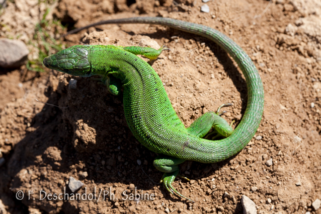 : Lézard vert occidental (Lacerta bilineata), femelle, Larrau (64), France.
