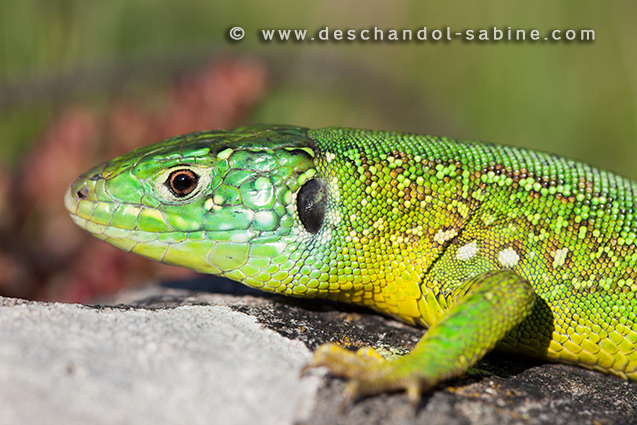 : Lézard vert occidental (Lacerta bilineata), Picos de Europa, Espagne.
