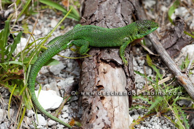 : Lézard vert occidental (Lacerta bilineata), mâle, Heudreville-sur-Eure (27), France.