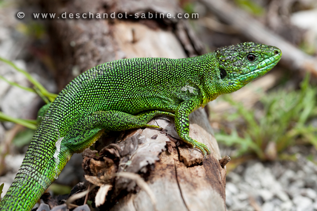 : Lézard vert occidental (Lacerta bilineata), mâle, Heudreville-sur-Eure (27), France.