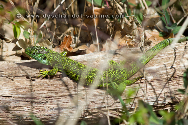 : Lézard vert occidental (Lacerta bilineata), Parc de la Brenne (36), France.