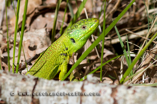 : Lézard vert occidental (Lacerta bilineata), Parc de la Brenne (36), France.