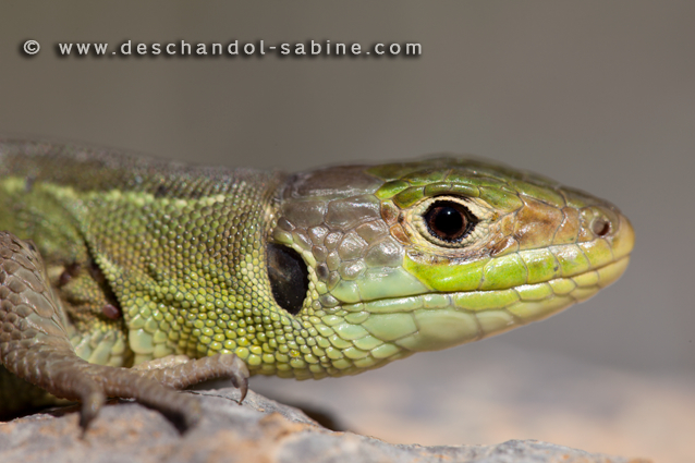 : Lézard vert occidental (Lacerta bilineata), jeune, Arreau (65), France.