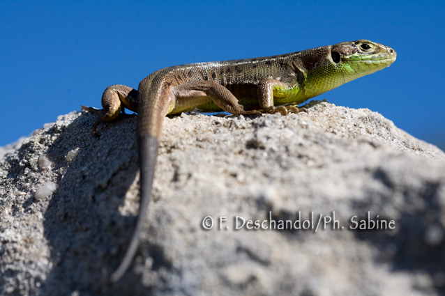 : Lézard vert occidental (Lacerta bilineata), subadulte, Cilleruelo de B., Espagne.