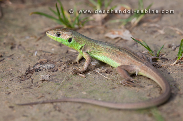 : Lézard vert occidental (Lacerta bilineata), juvénile, Muzzana del Turgnano, Italie.