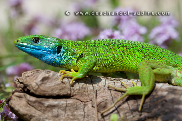 : Lézard vert occidental (Lacerta bilineata), mâle, Vižinada, Croatie.