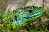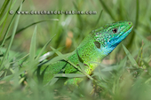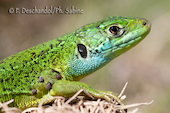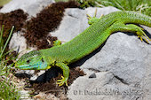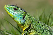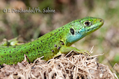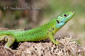Lézard vert occidental (Lacerta bilineata), mâle, Larrau (64), France.