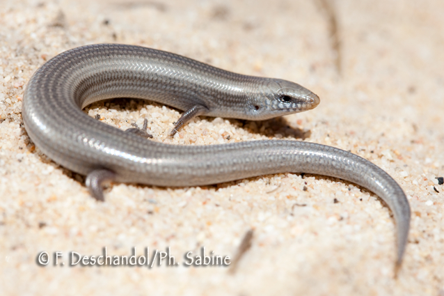 : Seps de Bedriaga (Chalcides bedriagae cobosi), jeune, morphotype des dunes, Doñana, Espagne.