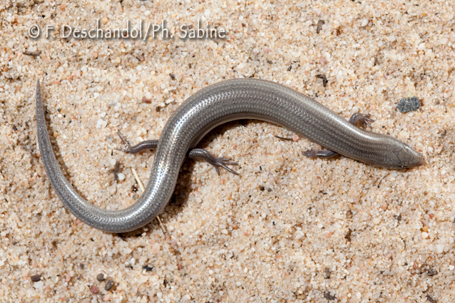 : Seps de Bedriaga (Chalcides bedriagae cobosi), jeune, morphotype des dunes, Doñana, Espagne.