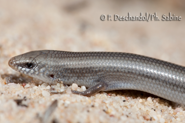 : Seps de Bedriaga (Chalcides bedriagae cobosi), jeune, morphotype des dunes, Doñana, Espagne.