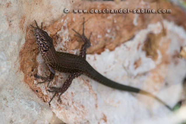 : (Podarcis lilfordi codrellensis), Escull de Binicodrell petit, Minorque, Baléares, Espagne.